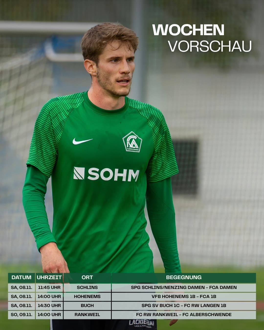 Unsere Damen treten am Samstagmittag (11:45 Uhr) in Schlins an, das 1b spielt um 14:00 Uhr in Hohenems, und unsere Kampfmannschaft will ihren Lauf am Sonntag um 14:00 Uhr in Rankweil fortsetzen und die Hinrunde erfolgreich auf dem 2. Tabellenplatz abschließen.