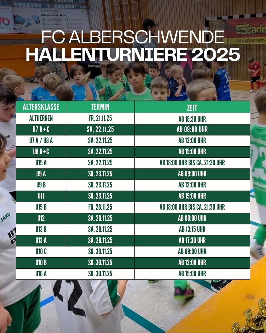 Bereits dieses Wochenende beginnen unsere alljährlichen Hallenturniere in der Turnhalle Alberschwende. Den Auftakt machen am Freitagabend um 18:30 Uhr unsere Altherren.