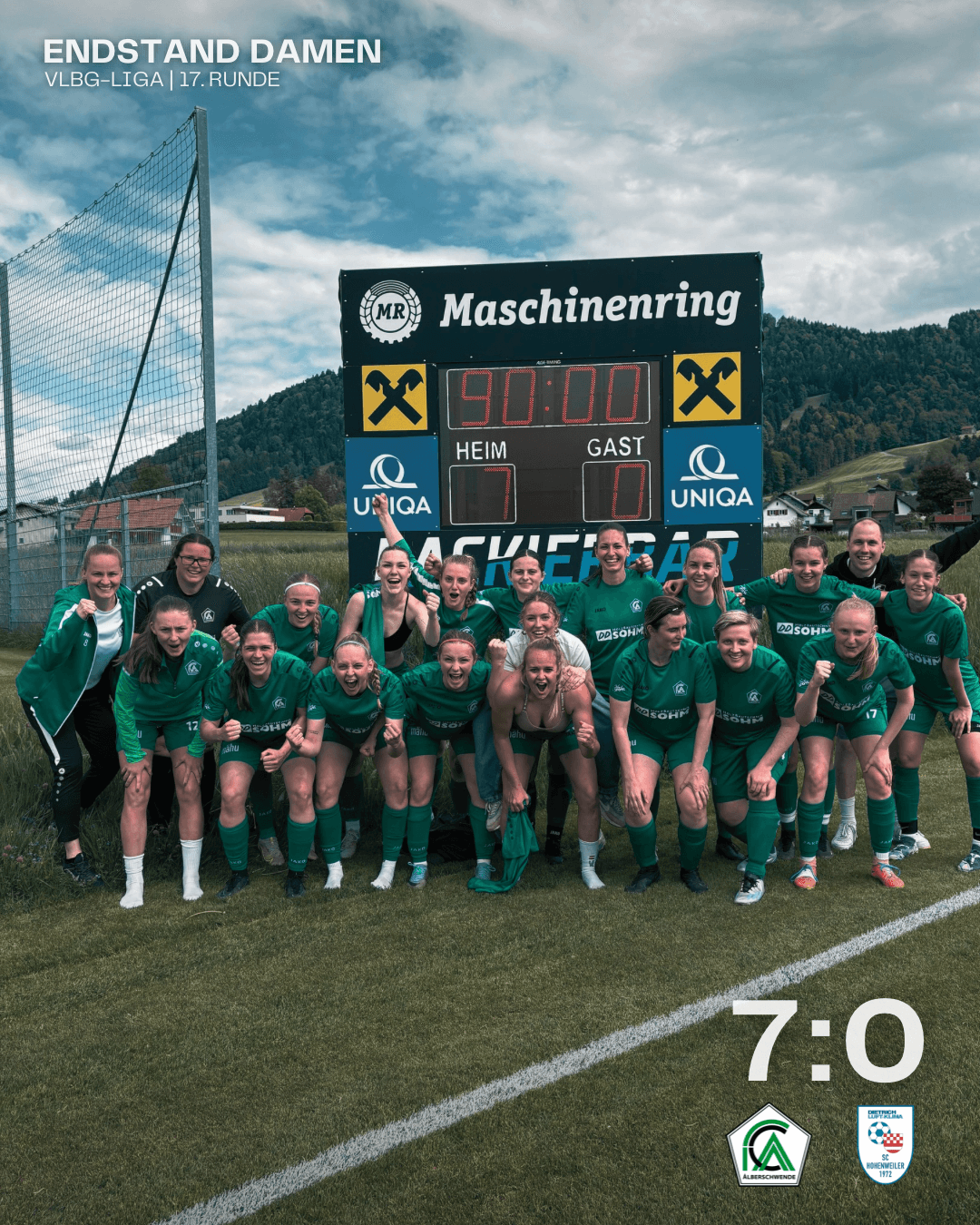Unsere Damen lieferten erneut eine beeindruckende Vorstellung ab und feierten gegen die SPG Leiblachtal einen klaren 7:0-Erfolg. Mit diesem Sieg festigen sie ihre Position an der Tabellenspitze! Elena Schmidle, Ronja Dür, Noreen Bereuter (3x), Vanessa Hartmann (2x) trafen für den FCA!