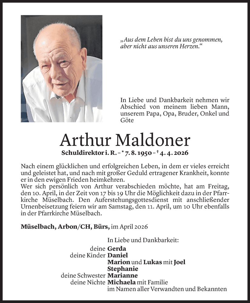 Der FC Alberschwende trauert um seinen ehemaligen Spieler und Vereinsmitglied Arthur Maldoner.