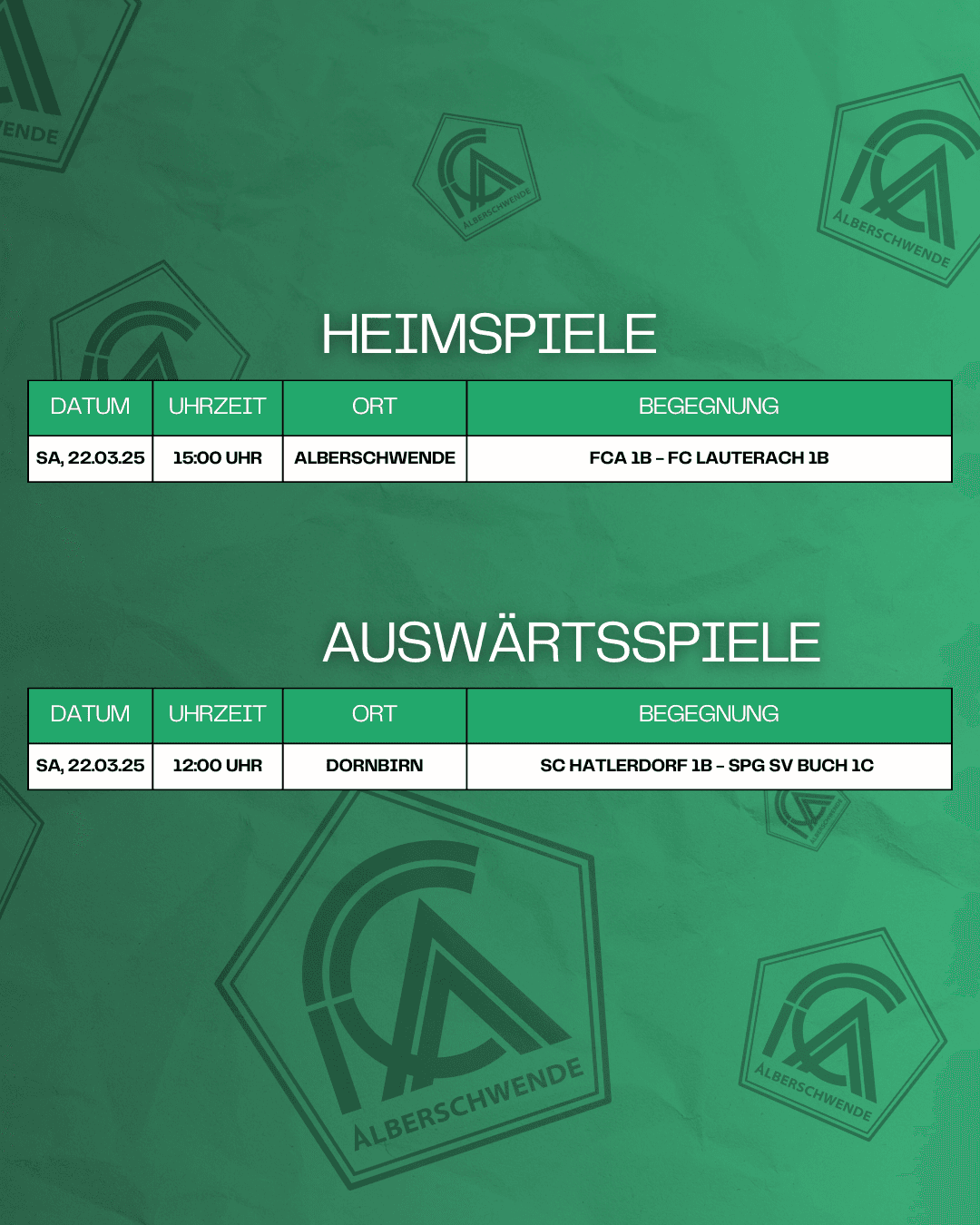 Während unser Eins und die Damen am kommenden Wochenende noch Freundschaftsspiele bestreiten, starten unsere 1b-Mannschaft und die SPG SV Buch 1c mit ihren Nachtragsspielen aus der Herbstsaison in die Rückrunde.