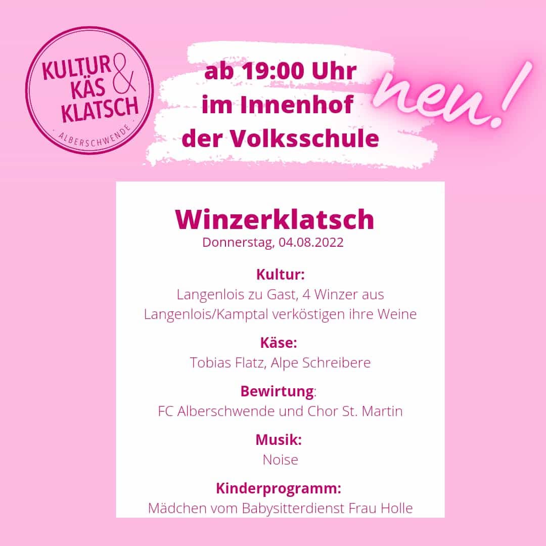 Veranstaltungsvorschau: Am kommenden Donnerstag (4. August) ab 19:00 Uhr wird der KulturKäsKlatsch vom FCA und vom Chor St. Martin bewirtet. Achtung NEU: Dieses Jahr findet der KäsKlatsch im Innenhof der Volksschule statt.