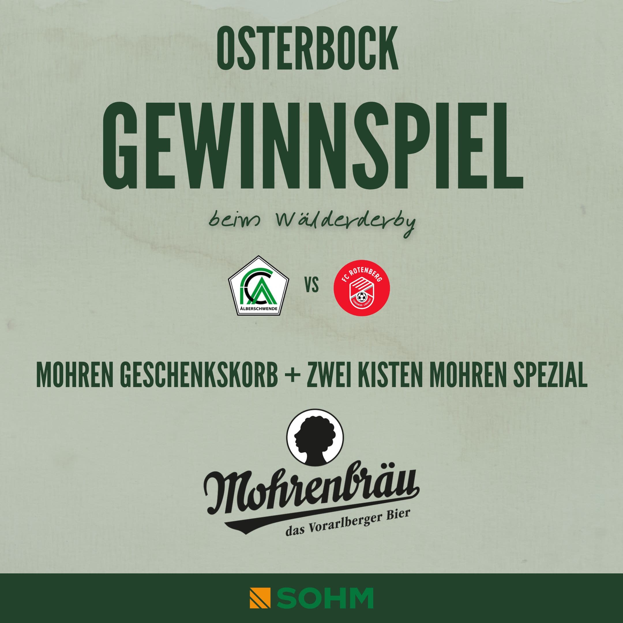 Anlässlich des Heimderbys gegen @fcrotenberg am Samstag 30.03. gibt es ein Gewinnspiel. Zu gewinnen gibt es einen tollen Geschenkskorb + 2 Kisten Mohren Spezial von der Mohrenbrauerei - vielen Dank dafür @mohrenbrauerei 🍀