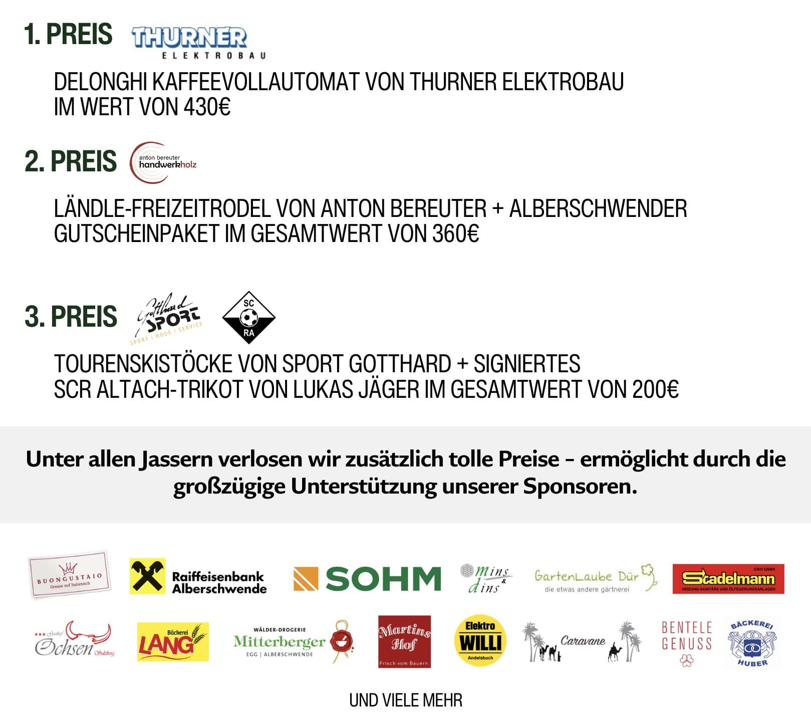 Im Frühjahr lädt der FC Sohm Alberschwende alle Fußball- und Jassfreunde herzlich zum gemütlichen Preisjassen ein.