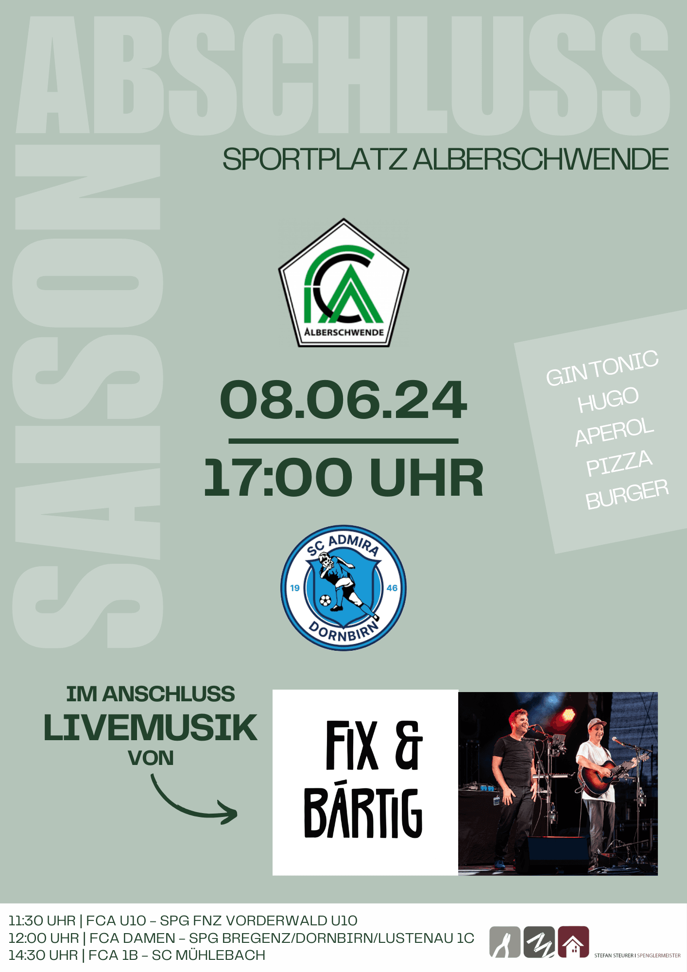 Saisonfinale gegen Admira und Mühlebach! Anschließend Livemusik von Fix & Bärtig!