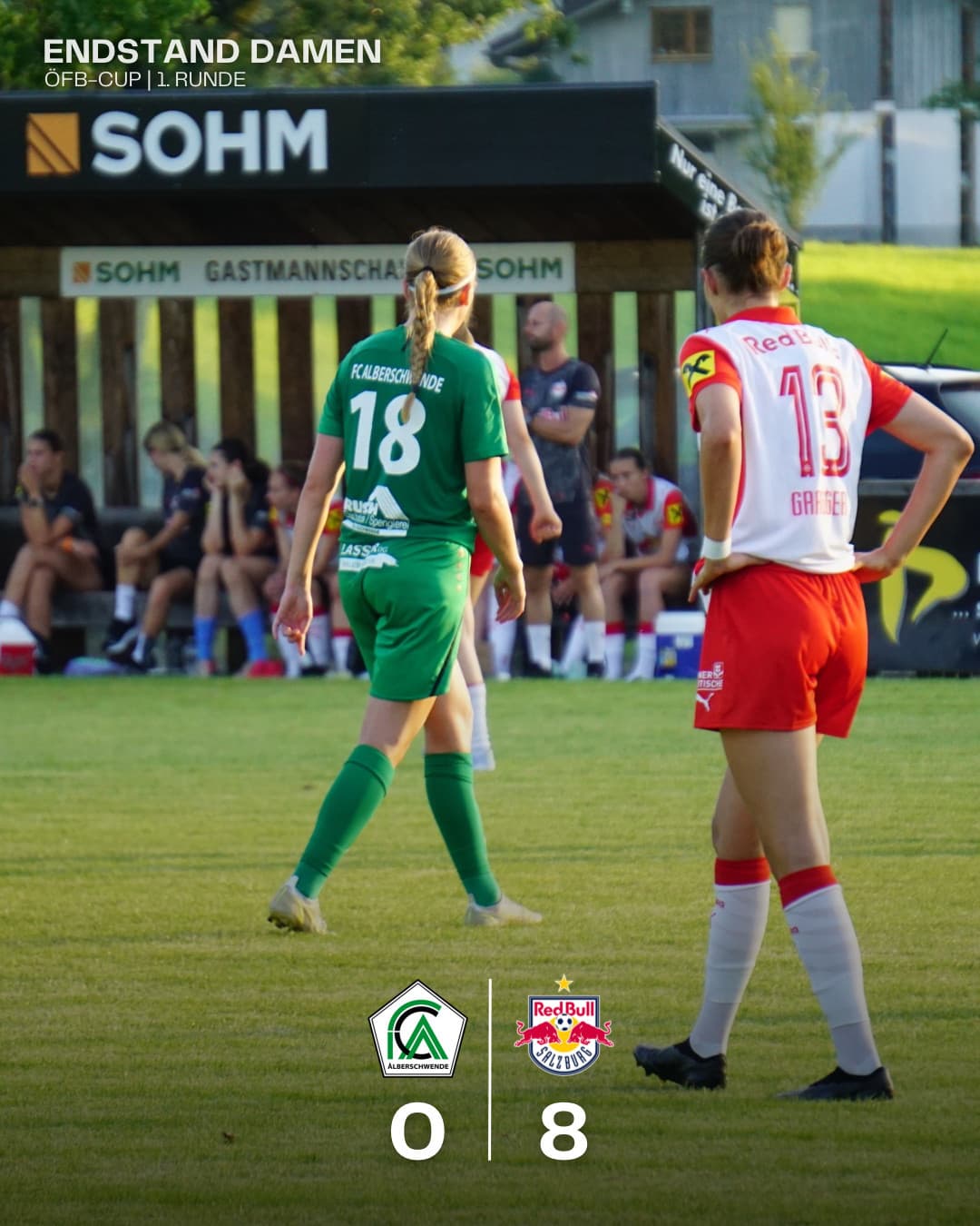 Unsere Damen mussten sich in der 1. Runde des ÖFB-Cups dem FC Red Bull Salzburg klar mit 0:8 geschlagen geben. Trotzdem: Starke kämpferische Leistung, Mädels! 💪
