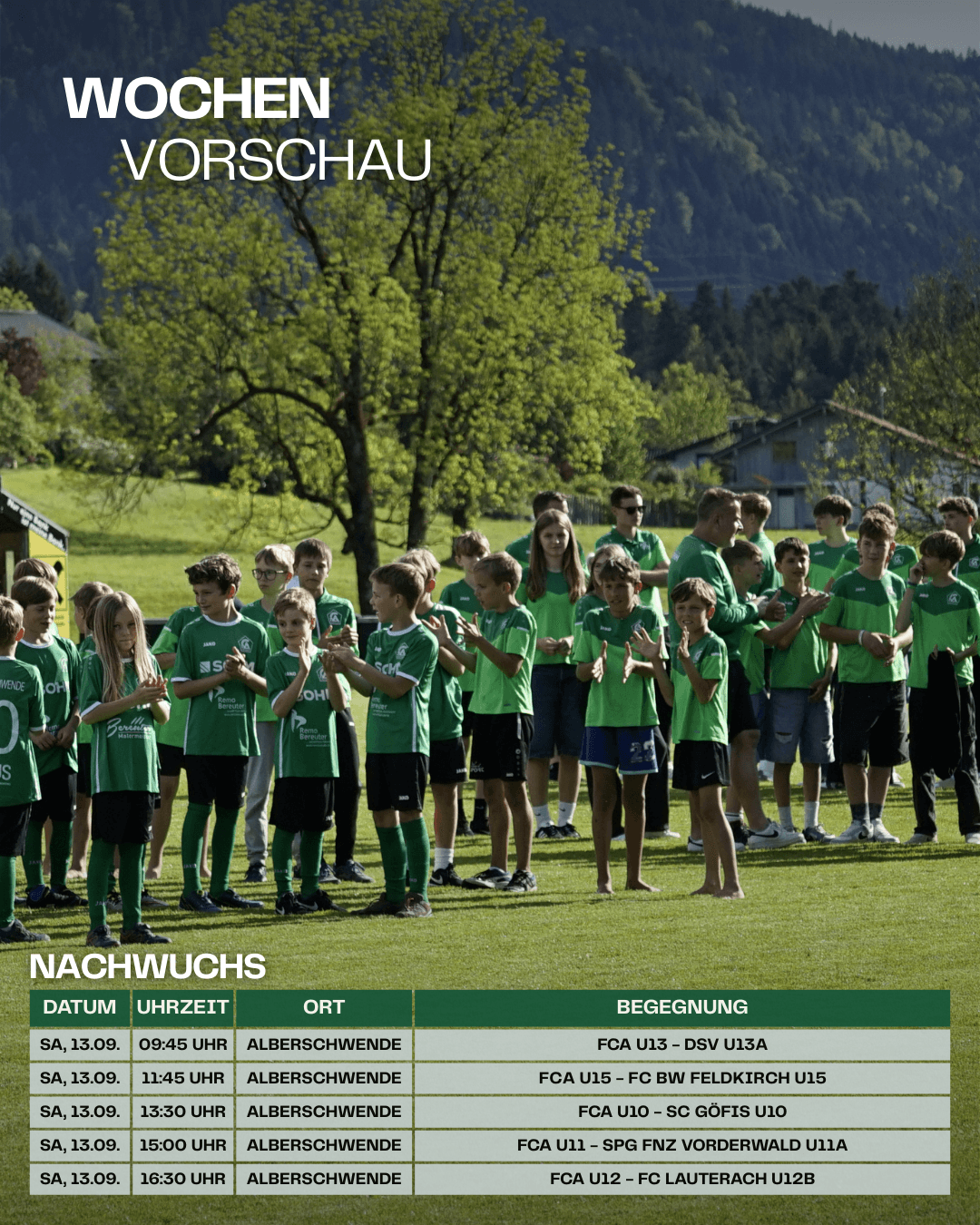 Ab 09:45 Uhr starten unsere Nachwuchsteams zuhause in ihre Spiele. Den ganzen Tag über gibt es spannende Partien unserer jungen Kicker zu sehen – also unbedingt vorbeischauen und anfeuern!