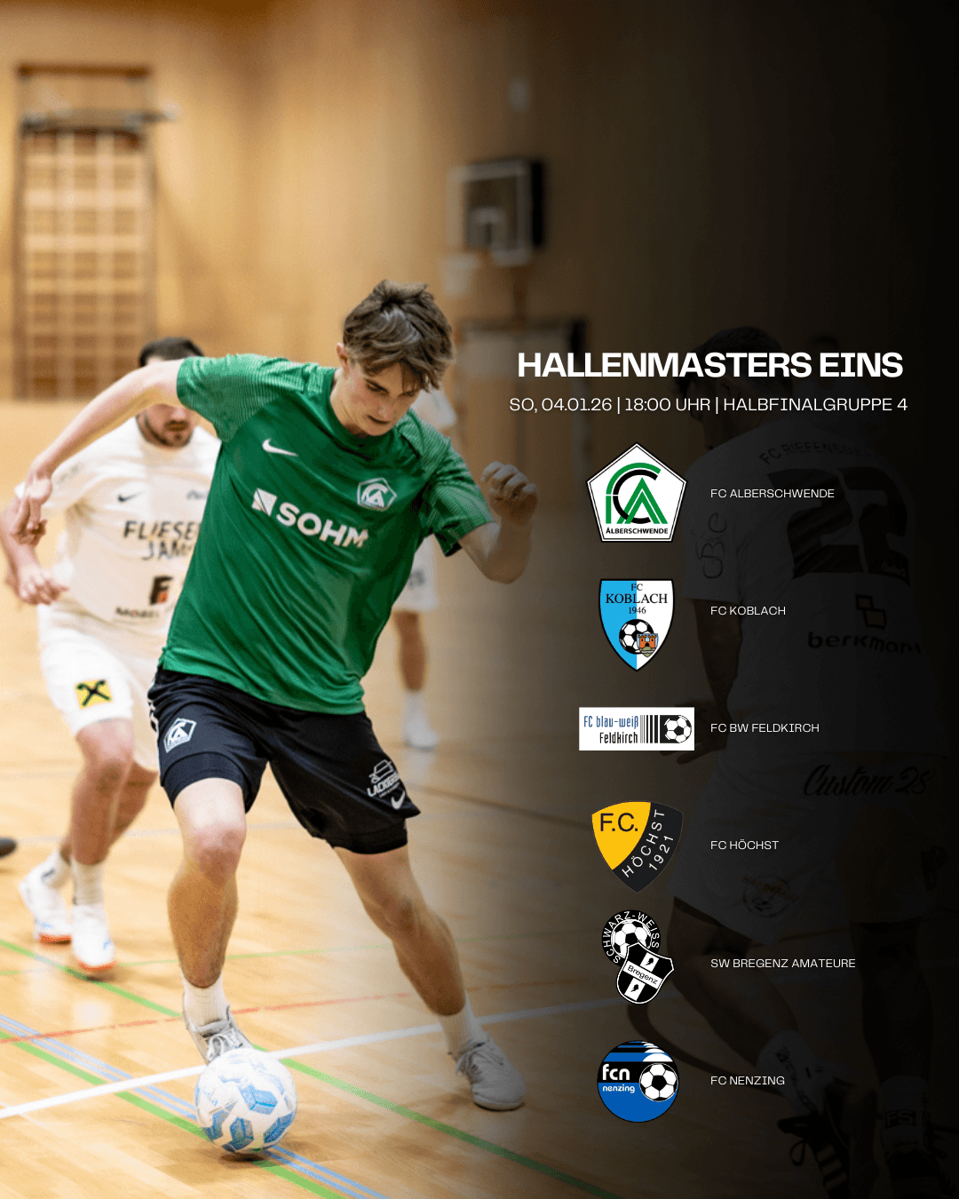 Im Kampf um die letzten zwei Finalplätze trifft unsere Mannschaft übermorgen in Gruppe 4 auf FC Koblach, FC BW Feldkirch, FC Höchst, die Amateure von SW Bregenz sowie den FC Nenzing.