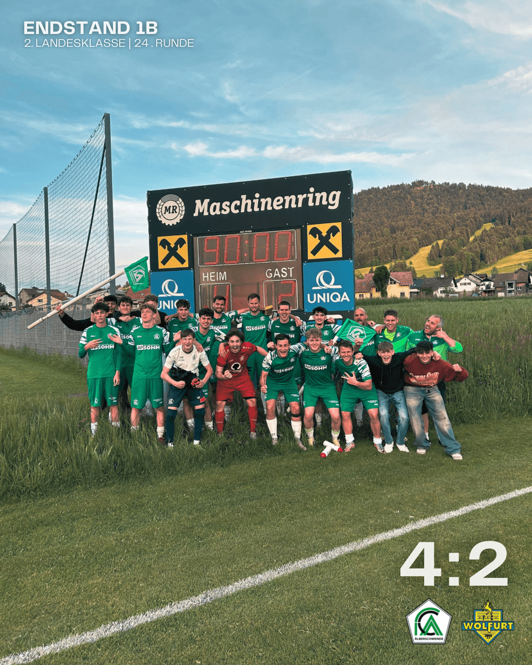Unser 1b beweist Moral und Kampfgeist: Nach 0:2-Rückstand gegen die SPG Wolfurt 1b dreht das Team von Tobias Stengele richtig auf und holt sich den verdienten 4:2-Sieg.