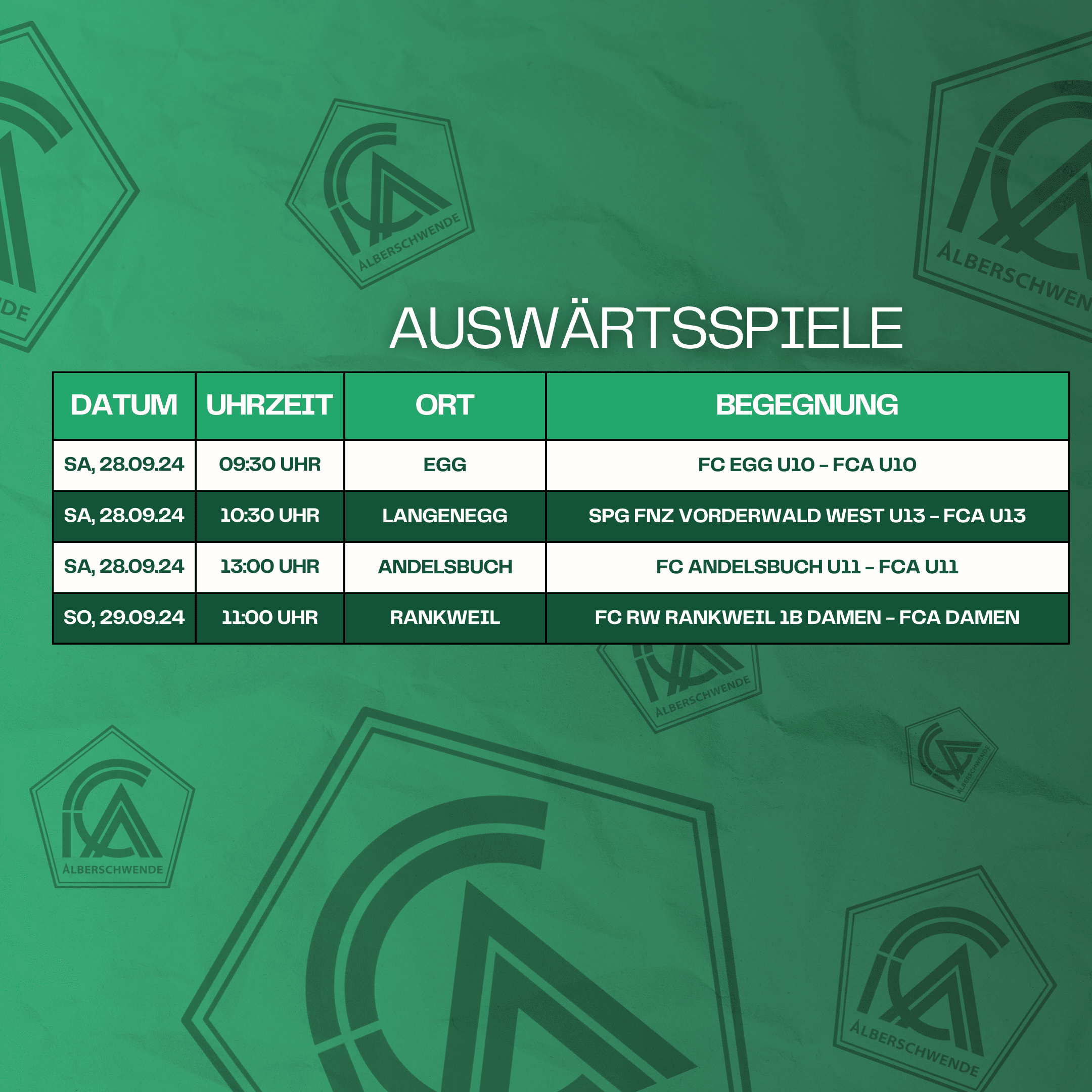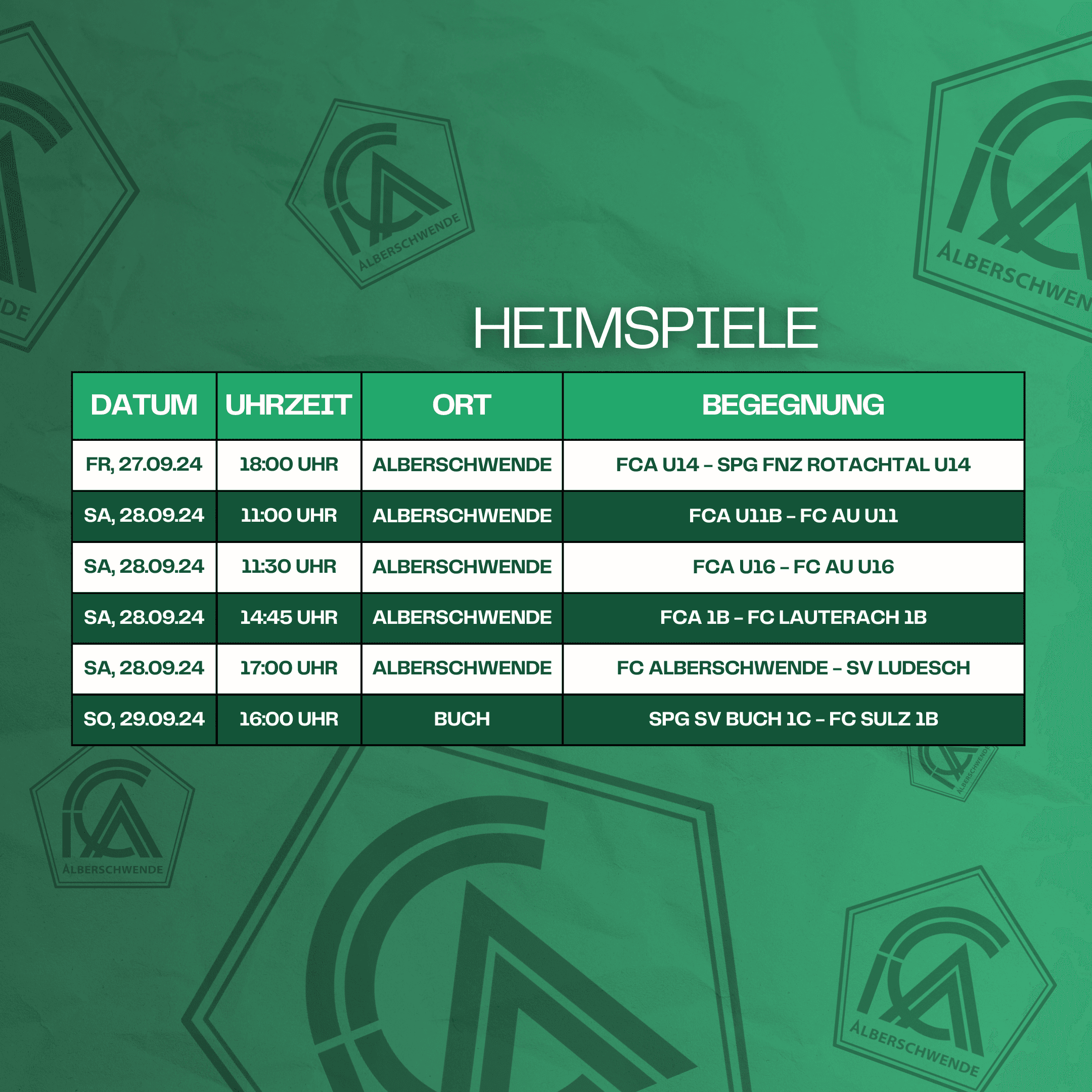 Die Begegnungen für das anstehende Wochenende hier nochmals auf einen Blick!