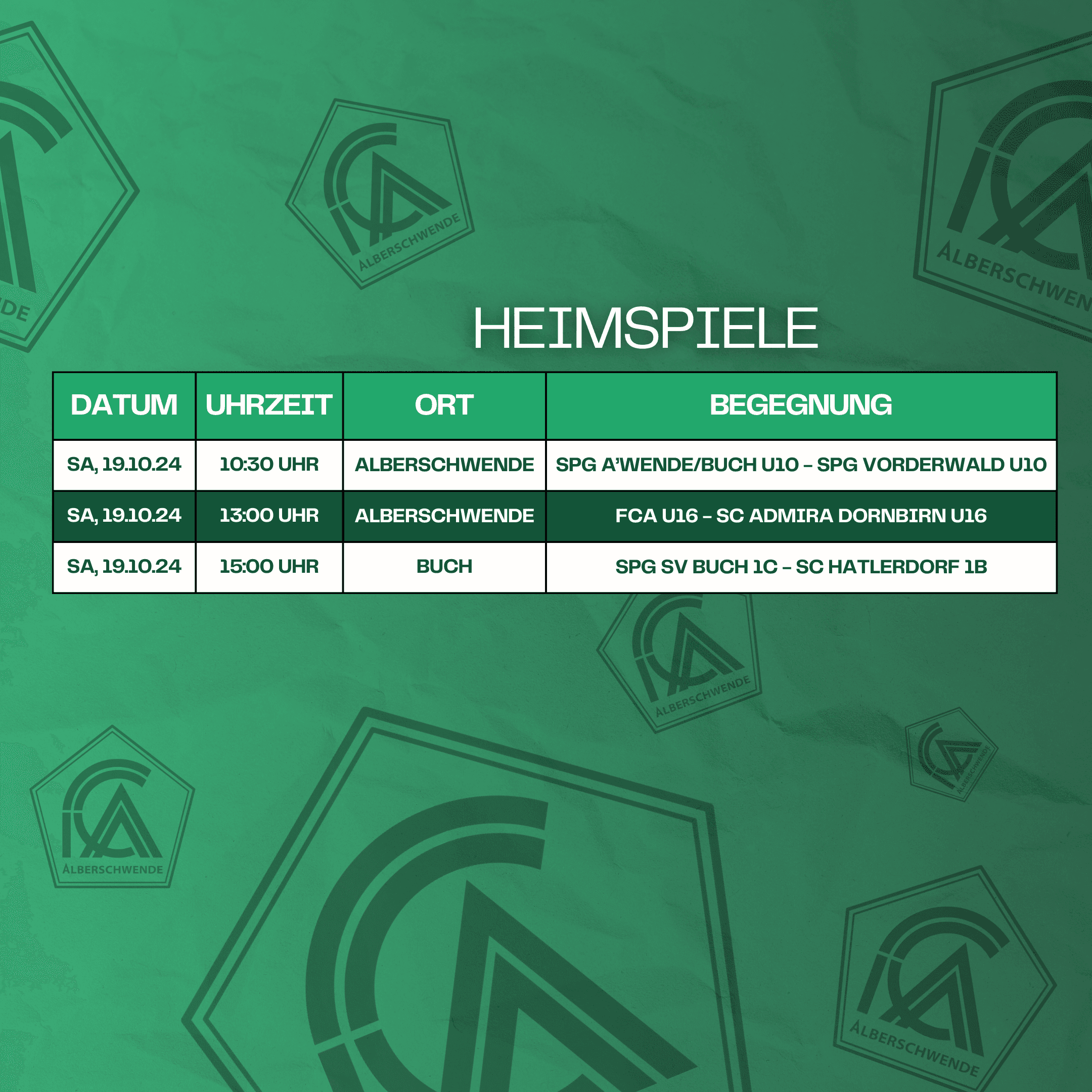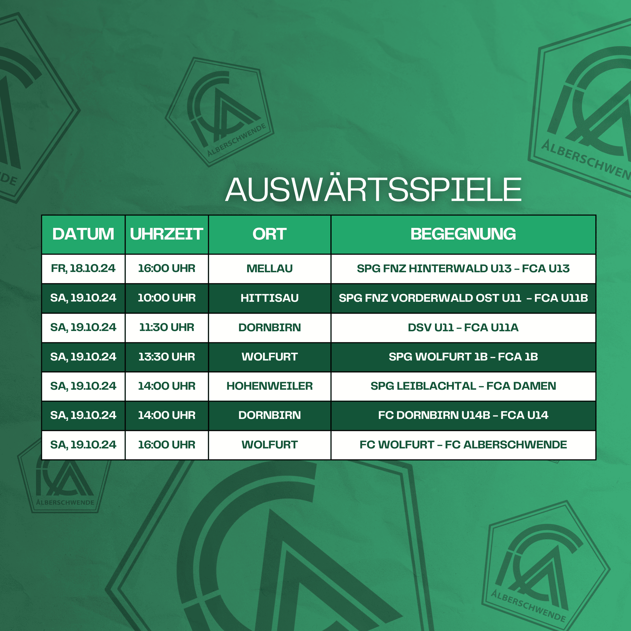 • FC Wolfurt 1b – FCA 1b: 13:30 Uhr